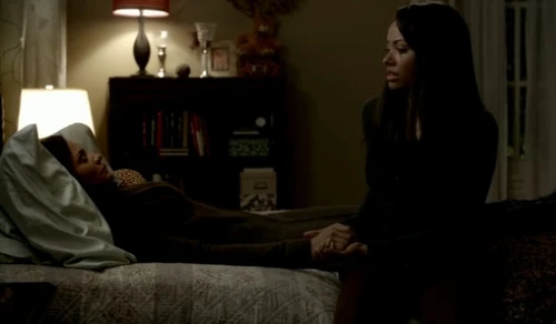 Auf die Bitte ihrer Tochter kam diese doch zurück, noch immer sichtlich unwohl mit ihrem Dasein als Vampir. Da Bonnie Alaric austrocknen wollte, erklärte sie ihrer Tochter den Vorgang.
