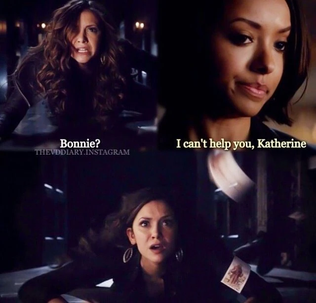 Leider hatte Lucy Katherine und Elena mit einem Zauber verbunden, so dass alles, was mit Katherine geschah, auch Elena passieren würde. Nachdem sie von Bonnies Engagement erfahren hat, dreht Lucy den Spieß um Katherine; Nachdem ihre Schuld gegenüber Katherine durch den Mondstein bezahlt wurde, macht Lucy sie unfähig. Katherine erwacht in der Gruft, in der Damon sagt, sie hätte da schon immer bleiben sollen. Als Damon die Tür der Gruft schließt, schreit Katherine, dass Elena in Gefahr ist und geschützt werden muss.