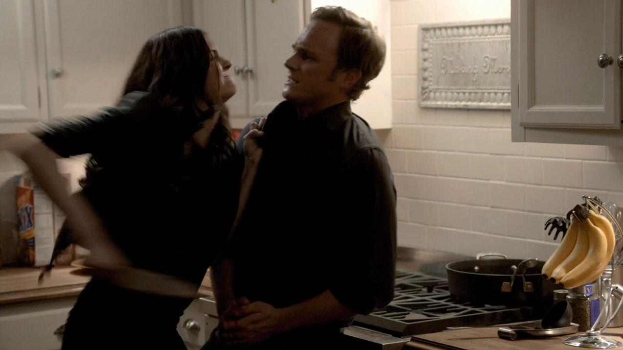 Katherine benutzt Jeremy und versucht ihm zu beißen.