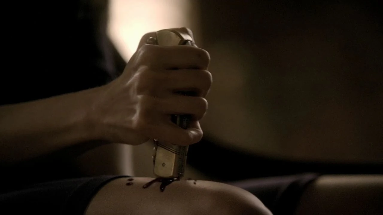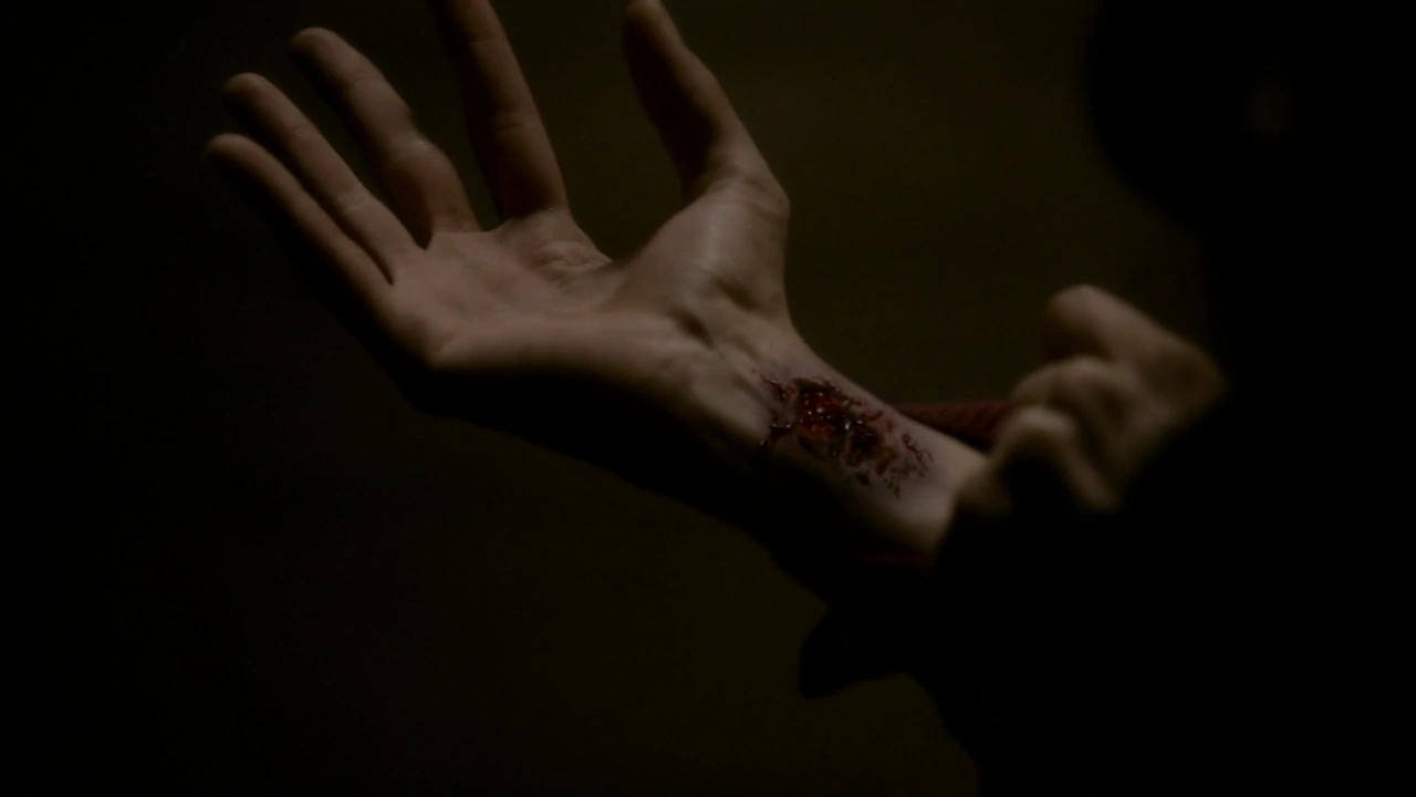 Klaus zwingt Katherine, sich mit einem Messer zu erstechen.