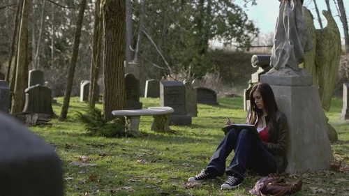 Елена идет на кладбище к своим родителям, и пишет в дневнике, сидя у могилы. На кладбище она снова сталкивается со Стефаном. Они общаются. И так как Елена поранила ногу, и у нее идет кровь, Стефан не выдерживает и скрывается.