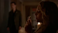 Klaus, angry and frustrated that Camille is dead, begins smashing everything in his room. He holds her after settling down, but Camille gasps awake. She says Aurora happened. We see in flashback, at the gym, Aurora had compelled Camille to drink a vial of her blood and slit her throat for when Camille knows Klaus is in love with her.