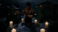 Vincent talks to the Obeah witch helping The Strix. They're a proud, powerful people who don't usually bow to others, yet she works for Tristan. Vincent, desperate to get away, uses his magic against hers. Blood falls from her eyes until she falls down, dead. He nearly gets away with the pendant, but Elijah rips out the vampire's heart. The pendant is now in Elijah's possession, and he takes Vincent with him.