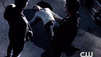 While Damon fought Enzo, Aaron took Stefan to his dorm to look for information to where Elena could be, but once there, Aaron attempted to trick him and shoot him, though he was easily disarmed. Stefan, furious that Aaron would waste valuable time while Elena was possibly being tortured, started to choke him, but Aaron tried to goad him into actually killing him, as he believed his death was inevitable as long as Damon was still around. Stefan then released him, insisting that he wasn't like his brother, and Aaron, relieved, gave Stefan the documents he promised, which led Stefan to realize Elena was being kept at Grayson Gilbert's old medical practice in Mystic Falls. After Stefan had overpowered Wes and rescued Elena before she could be injected with his "cannibal Ripper compound," Aaron arrived at the lab and punched Wes in the face again, as he felt hurt and betrayed that Wes would risk Aaron being killed by Stefan and Damon just so he could keep experimenting on vampires. Aaron then demanded that Wes stay away for him, but not before taking Wes' "Ripper compound" with him so he couldn't use it on other vampires.