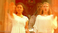 With the time to perform the sacrifice upon them, they head to their altar and begin the spell to contact the Ancestors. Their sacrifice, however, was interrupted by Klaus, Elijah, and Hayley, newly in transition. She and Monquie joined hands and channeled the powers of the Ancestors, keeping the Mikaelsons at bay. Monique believed them to be fools to come against them in their place of power in their strongest hour. The Mikaelson didn't just face them three, they faced them all. She and Monique are surrounded by the Ancestors and channeled their power. Klaus retaliated and threw a metal fence post towards the Harvest girls. Unaffected by their spell, the post impaled Abigail up against the wall, breaking their connection to the Ancestors.