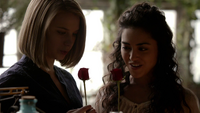 In A Closer Walk With Thee, Abigail walks down the street with Monique, Davina, and Genevieve. Genevieve lectures them about their magic and explains to them that New Orleans is full of ghosts and their dead are always there, hovering. When supernatural creatures die, they're doomed to spend eternity alone, watching the world go on without them. However, for them, they linger in a different way, consecrated in the earth, replenishing its power for the Ancestral witches. Davina inquires about humans, but is saddened that they perhaps find peace. She sends them back to the Lycée where Davina decides to perform a seánce in an attempt to contact Tim. Abigail is reluctant at first, believing that the Ancestors wouldn’t like them messing around in the spirit world, but Davina manages to convince her otherwise. Their attempt, however, instead caused Mikael to be able to contact Davina with Abigail completely unaware of his presence.