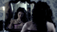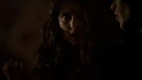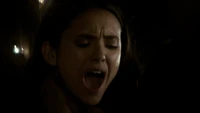 Back at the Salvatore house, Damon has a flashback and remembers speaking to Katherine in the 1860s. She asks if he will miss her while he is off fighting and he says he will, but points out that she will still have Stefan. Katherine asks if it is so wrong for her to want them both. However, Damon hallucinates that Elena has joined them. Elena tells him that Katherine was just toying with him and he could have walked away - he had a choice. Back in the present, Damon realizes that his bite is getting worse.