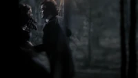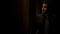 Elsewhere, Klaus shuts the lid of Elijah's coffin and tells some undertakers to put him with "the others". Stefan receives a text from Elena, explaining that Damon is okay and asking where he is. Klaus asks if Katherine made it in time, and reveals that he knew she was on vervain. However, he adds that she won't get very far and adds that Stefan will help him with that. Stefan asks what he wants and Klaus promises that everything will be explained once they leave town. He adds that he has a gift for Stefan and calls over a terrified young girl. He explains that he wants to make sure Stefan will be of use to him and bites her neck. He adds that he could have compelled the woman but a "real ripper enjoys the hunt". He throws her away and she runs away screaming, but Stefan rushes in front of her and drains her of blood until she collapses on the floor. Klaus is impressed and says that they can leave now.