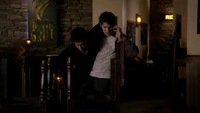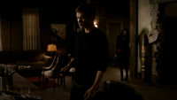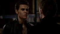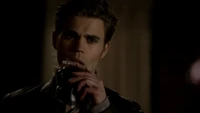 Over at Alaric's apartment, Klaus pours his blood into a vial and asks Stefan if he is ready for a "decade-long bender". Stefan insists that isn't who he is anymore and Klaus is disappointed, saying he would have been a good wingman. He begins to pour the blood away until Stefan stops him. Klaus is pleased and throws him a blood bag, telling him to drink. He adds that he has to finish it all, saying that if Stefan does everything he says, he will save Damon. Stefan drinks it, but Klaus passes him another blood bag and tells him to continue.