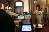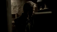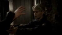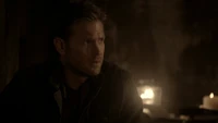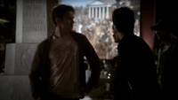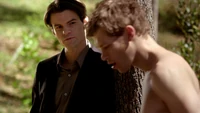 However, Klaus admits that he doesn't know whether Stefan will be any use to him. Later, Klaus talks about Stefan's murderous past, although Stefan says he hasn't been like that for years. However, Klaus says that's the kind of vampire he could make a deal with. He calls Katherine over and bites her, shocking her as she realizes she now has a werewolf bite. He then feeds her his blood and she heals so that Stefan realizes that Klaus' blood is the cure. Klaus says they should begin to talk. Over at the Salvatore house, Alaric brings Damon some alcohol.