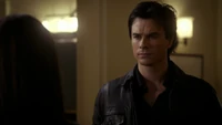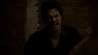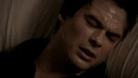 He returns home and gets a drink, before opening the curtains. He takes off his ring and stands in the daylight with his arms stretched out, his skin beginning to burn. However, Stefan arrives and pushes him back into the shadows with anger, slamming him into a wall. He refuses to let Damon kill himself and forces him into the cellar. He says he has Bonnie looking for a cure to the werewolf bite sporting his left arm, but Damon tells him just to say goodbye now.