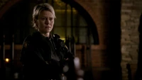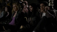 Bonnie tells Jeremy to wait behind, but Jeremy refuses, saying that for once they can't stop him from getting involved. Elsewhere, Liz takes Elena to the police station and hears that Damon has been spotted in town. Elena tells her that she is wrong to hate the vampires, but Liz points out that they are murderers. Elena begs to accompany her when she goes to get Damon, explaining that he is sick, but Liz asks a guard to make sure Elena is kept at the station. Meanwhile, Damon arrives at the screening and hallucinates, thinking he is seeing Katherine. Jeremy finds him and helps him into the Mystic Grill. Inside, Jeremy calls someone to tell them they are at the Grill. Liz arrives and shoots at Damon, but he rushes off quickly and the bullet hits Jeremy. Liz is shocked and, at that moment, Caroline and Bonnie arrive. Bonnie points out that Jeremy's ring won't work because he was hurt by a human, not a supernatural creature. Caroline feeds Jeremy her blood - much to her mother's shock - but it doesn't work. Bonnie realizes that she knows what to do and takes him away with Alaric, who has just arrived. Meanwhile, back at the station, Elena uses a chair to smash the window and escape.