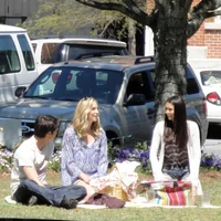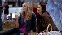 Elsewhere, Alaric gets drunk at the Mystic Grill, but is surprised when Stefan calls and reveals that Damon is dying. He agrees to help out. Meanwhile, Jeremy and Elena arrive at a special outdoor screening of Gone With The Wind. Jeremy is unconvinced, but Elena explains that they need to keep living normal lives until Jenna's death isn't so hard to deal with. Caroline arrives with picnic food and tries to keep their spirits up. Stefan and Bonnie go to the witches' house and Bonnie explains that she will try to summon Emily. Emily ends up possessing her body and Stefan asks how to heal a werewolf bite. Emily refuses to give him an answer, explaining that there is a natural balance to everything and maybe Damon deserves to die. She does hint that there is a cure, though. Suddenly, Bonnie screams and clutches her head. She explains that the witches don't want her there as she is abusing their power. However, she reveals that she heard them saying that Klaus is the key to a cure.