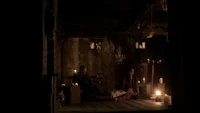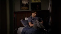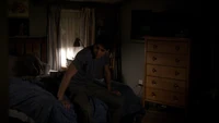 Jeremy wakes from sleep, believing he's heard a sound. He thinks it is Alaric, but as he looks over the stairs, someone appears behind him. They soon disappear again. He walks downstairs, but is shocked to see Anna standing in the kitchen. When he turns around, Vicki is standing there.