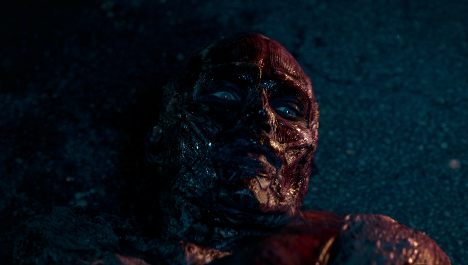 In Someplace Far Away From All This Violence, Jed and Kaleb come across a corpse which they assume to have been the doing of the Argus. After dispatching the monster, the corpse suddenly comes back to life with a severed arm, shocking the boys.