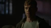 Jed, Cleo, MG, and Ethan bring the man into the gymnasium and Cleo bandages him. Jed explains that they don't know who he is and when he and Kaleb found him, he'd just been ripped apart by an Argus. Then he literally started putting himself back together. They were on their way back to the school to get answers from him when Kaleb blew up his car and burned the guy. Regardless, they won't be able to get any answers until his mouth heals. MG elects to go look for Kaleb and Cleo joins him. Jed will remain behind to watch over the man. Ethan decides to stay behind, too. If this guy is dangerous, then he'll help keep people safe.