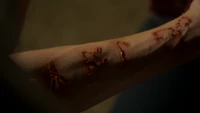 At a motel, Davina has refused to sleep for days because she's disturbed that Kaleb is possessed by a vampire, or rather, a Mikaelson. She's only staying with him for his knowledge of magic. Esther uses magic to carve a message on his arm, meaning it's time to come home.