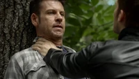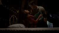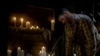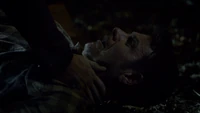 At the church, Aiden's cover is blown when Finn figures he's working against him because Aiden's brother was among the recruits. He snaps Aiden's neck. Hayley fights off Finn, but she's unable to defeat him. Jackson comes and shoots arrows at him. Camille puts the chains on him.