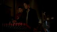 Davina and Kol enter the tomb, and Davina is in awe. Kol says there's a way to change one element to another, and he wants to change a dagger that will work on Klaus to put him to sleep. They perform a spell on a chain, and Kol puts on Davina as a bracelet to replace the one she had.