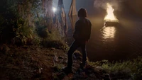 Jackson puts Oliver's body into a boat and lights it up on fire. At dawn, Hayley arrives. Jackson is upset that the wolves have refused to come, since it is tradition to have a funeral at dawn. Hayley tells him there's a war going on, and the pack needs their alpha.