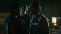 In You Remind Me of Someone I Used to Know, Dennis, Ethan and other Timberwolves arrive at the Salvatore School to vandalize the school. It's tradition. Ethan is quarterback and calls the shots, and wants to change tradition. Dennis is headstrong and challenges Ethan, but he backs off, opting for a nice walk home. The other two Timberwolves follow him in support. After they leave, a howl rings out in the distance and he's determined to bag a wolf. However he's attacked by a larger creature.