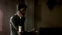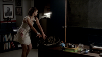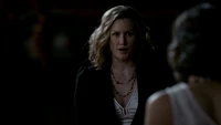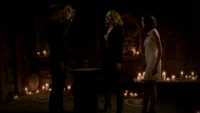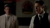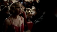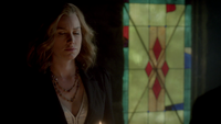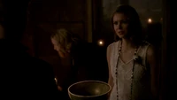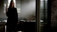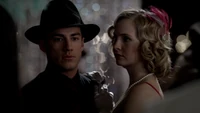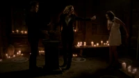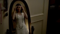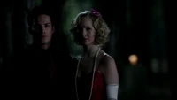 At the Mikaelson Family Mansion, Klaus is painting on a canvas. Unaware that Esther has possessed Rebekah, Klaus asks his 'sister' what took so long in claiming the White Oak Stake from Alaric. Esther hands him a decoy stake which Klaus throws into the fire. He tells her to pack because they're leaving town. Esther plays the Caroline card and convinces Klaus to stay until after the 20s Decade Dance.