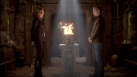 Damon arrives at the hospital and tells Meredith that Alaric isn't taking the herbs that Bonnie gave him. Alaric and Esther are in the cemetery. She informs him that this is the location where Klaus killed her and thus is a good spot to channel her powers. She asks for his Gilbert Ring, telling him that binding the ring to his stake will make it indestructible. Alaric gives it to her and she binds the ring and stake together telling him it is now the ultimate weapon.