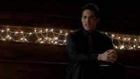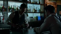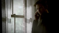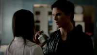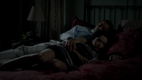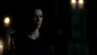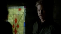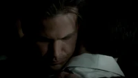 Damon is sitting in the cemetery when Meredith tells him she sedated Alaric so he could die peacefully. Meredith doesn't want Damon to leave Alaric alone. He doesn't want to see Alaric but Meredith convinces him to do so. Damon walks in and Alaric amusingly asks if he's going to give him a dream like he did for Rose. Damon genuinely apologizes for killing Alaric twice and shares his battle of bourbon. Alaric takes the bottle and drinks with a tear rolling from his eyes.