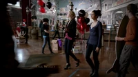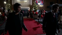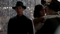 Elena and Stefan arrive. While dancing, they notice that Bonnie is there with Jamie. After commenting on how happy she seems, Elena begins to tells Stefan about what happened in Denver. Stefan interrupts and tells her she can tell him later. Damon arrives and informs them about Alaric. They begin to leave, which Jeremy sees and he begins to follow. He bumps into Bonnie and Jamie and Bonnie is curious why he's still wearing his Gilbert Ring after what it did to Alaric. He tells her when the vampires are gone he'll take it off.