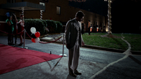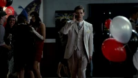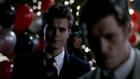 Klaus walks into the dance floor and immediately notices Caroline and Tyler dancing. Klaus walks up to them asking where Tyler has been. Tyler tells him that he just returned. Klaus asks if he can cut in and dance with Caroline. She protests at this but Tyler states that it is fine. Caroline skeptically takes Klaus' hand and he leads her out to the dance floor. Klaus informs her that he's leaving town and tells her an invitation is open for her to join. When Caroline scoffs at the idea, Klaus tells her Tyler and Mystic Falls will never be enough for her. He walks off as Caroline looks on confused. Klaus tries to leave the school but is stops when he sees the salt line from Esther's spell. Stefan informs him that his mother did it.