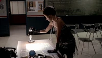 Damon, Stefan and Elena discuss what to do about Alaric. Damon suggests putting him down. Jeremy overhears this and vehemently veto's the idea. He walks out and Elena follows. She tells him they will find another way. Esther appears. Elena is alarmed and tells Jeremy to go get help, which he leaves to do. Esther tells Elena that Alaric needs her assistance and she will give it whether she wants to or not. Elena follows her out. Damon and Stefan hurry outside and see that Esther has cast a spell to contain them at the school. Bonnie and Jamie are in a classroom making out when they're interrupted by Damon who tells them what's happening.