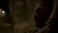 Esther appears to Bonnie in her sleep and tells her Bonnie she needs to finish what she started. Jamie wakes her up but she falls back asleep. In the tomb, Damon sees that Alaric is now unconscious and barely breathing. Damon gives him a sad look before exiting. Outside, he sees Bonnie hazily walking towards him. After asking her if she's sleepwalking, she turns around and uses her powers to force him to the ground. She enters the tomb and stabs her hand with the White Oak Stake. She places her hand in Alaric's mouth. This wakes him up and he then drinks from her neck. Alaric stands up now an Enhanced Original vampire with his darker alter ego in control.
