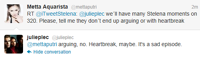 - Jenna was mentioned. She was last seen in The Sun Also Rises.