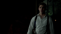 In the classroom; Bonnie is trying to undo Esther's spell with Stefan, Damon, Jeremy, Jamie and Klaus surrounding her. Matt walks in explaining all the non-vampires are leaving the school. Jeremy suggests that he and Matt can go stop Esther themselves. Klaus grows impatient and grips Jamie by the throat in an attempt to hurry Bonnie's spell along. Stefan reminds him that Bonnie won't help them if he kills people she cares about so Klaus lets him go.