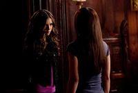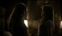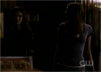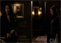 Elena goes to the Salvatore Boarding House to find Stefan, who was holding Katherine prisoner in an attempt to get the truth from her, but came face to face with Katherine for the first time instead. Elena asked her how they looked alike, but Katherine said she was asking the wrong questions. Katherine examined Elena just as Stefan arrived and she disappeared.