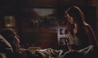 Katherine walked in on Elena kissing Damon due to the fact he was dying from a werewolf bite. Katherine gave Damon the cure and as she walked away, she turned back and said that it was okay to love both brothers, as she did, but seemed spiteful. She also said that it was good Elena had Damon since Stefan wouldn't be coming back.Katerine doesn't seem to dislike Elena as she once did, instead trying to help Stefan. She impersonated Elena to help with the plan to kill Klaus. By this point, they seem to have reached a mutual alliance.