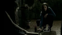 Katherine was working with Bonnie when she hears someone coming and she goes to check. Elena ambushes her, kicks her around, and almost kills her before Stefan stops her, telling her that Katherine's linked to Bonnie. Elena's hurt, believing Stefan's still in love with Katherine.