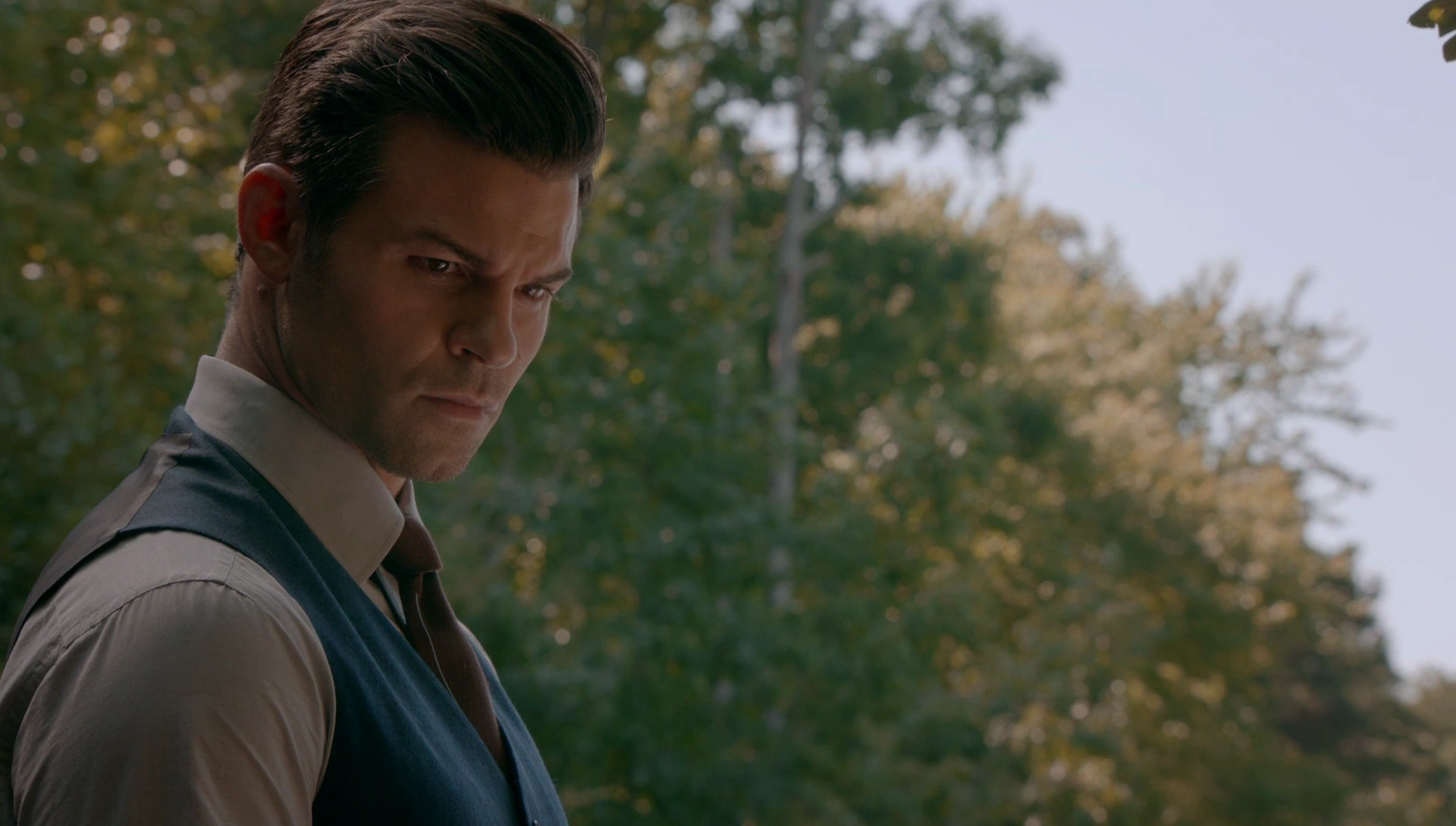 1914In the year 1914, Elijah attended his family's Christmas party with his siblings. During the party, Klaus gave a toast to the party-goers, revealing that he knew of betrayal planned by their brother Kol, who had been conspiring with witches against him. Elijah, seemingly having also been informed of his younger brother's treachery, stopped Kol as he tried to flee, holding him down while Klaus daggered him. 1919In the year 1919, Elijah is seen in a meeting room, meeting with members from the Guerrera Family, a family of thieves and butchers according to Klaus, who says that is noting compared to what they turn into on a full moon. Elijah told them that Mayor O'Connell was a little late but they should continue with business without him. Elijah assured them that they didn't need to be scared of Klaus as he made a promise they would be safe and Klaus told them his brother always keeps his word. Then a Witch appeared, Elijah told him it was a private meeting. But he said it was a meeting between kings and claimed he was also a king. He presents himself as Alphonz Bellatunde Delgallo and that he now speaks for the witches of the French Quarter. He tells them the witches should get their fair share and leaves with a gift to Elijah and Klaus, the Mayor's head. Later, when Marcel returns home from World War I, he's greeted by both Elijah and Klaus. Klaus tells Marcel, "The prodigal son has finally learned to hold his liquor." Marcel tells him being in the army does that to you. Elijah tells him it's good to have him back, and tells him that Niklaus was beside himself in Marcel's absence. Klaus then tells him that he and Elijah have had a little argument that Marcel might help with a rouge witch who wants a piece of the city they built. Klaus considered to kill him but Elijah meant that negotiation is their best recourse, as Elijah knows how fast news can travel, but also the very horrors of war itself. Klaus reveals that he invited the witch and Elijah told Marcel he could choose what they should do after he saw the witch. Elijah tried to negotiate with him but after all his sacrifices Elijah decided to meet with him in a private room. However Klaus appeared instead as Elijah only comes when they deal and Klaus comes when the deal is closed. Later that year, Elijah is seen by both Rebekah and Genevieve, Rebekah asks if she is interested in Elijah but she confirms she is interested in Klaus, Rebekah then begins to talk of her older brother Kol who is also a bad boy and she would like him to. At the bar Elijah meets with Clara Summerlin who was possessed by Celeste Dubois at that time. She had spilled her drink and Elijah gives her his tissue and leaves her with a smile. Six months later in 1919 Elijah and Klaus are seen with a Werewolf named Lana who's the Werewolf Queen of the Crescent Wolf Clan. Klaus talked of how werewolves, vampires, witches and dirty-cops are happy as clams and drunk as stoats. They're celebrating to the new era-collaboration in the face of prohibition. Klaus told him they did it, Elijah said he helped build the city but it was all because of Klaus. Elijah and Klaus sat and drink, until they saw Marcel and Rebekah to come, Klaus knew they were a pair, but Elijah told him not to cause trouble. And to his surprise Klaus allowed them to be together and sat with Elijah minutes later. The next day Elijah enters Klaus' room and sees Lana and jokes of him sleeping with an enemy who is now their ally, Klaus tells Elijah they got tickets to The Opera House and asked him to tell Rebekah to bring Marcel with her. Elijah then left them. When Elijah was getting ready for The Opera, his father Mikael visited him and told Elijah he saw the "Le Grand Guignol" piece in Venice. Elijah is shocked seeing his father, Mikael assured him though, he only wished to talk. Elijah told him that he has hunted them for centuries and laid waste to half of Europe and wants to talk? Mikael corrected him that he only hunted Klaus and never his true children, he tells him he's his blood and he's proud to call him a son. Mikael then asks Elijah for his help to kill Klaus. Elijah attacked his father in rage, only to be thrown against the wall. Elijah tells his father that if he thinks he would betray Klaus for his own father, then he's a fool without equal. Mikael tells him that he'll forgive his sentimental affections for his brother, but says that Klaus is an abomination and that they must be erased from existence. Mikael then showed him the White Oak Stake, Elijah tried to stop him but Mikael forced him against the wall and told him, that either he stands with him or falls with Klaus and after Elijah chose Klaus, Mikael staked Elijah with a normal wooden stake. After Elijah woke up again he rushed to The Opera House and saw Mikael at the stage, as he was feeding from Marcel, Elijah urged his siblings to flee the scene. Mikael then burned down The Opera House and continued to hunt his children. Elijah, Klaus and Rebekah were only a few blocks away. Elijah told Klaus and Rebekah to flee while he delayed his father for a brief time. Klaus and Rebekah then left New Orleans, leaving their older brother behind. Rostock Germany, 1933 Elijah threatens August Elijah arrived in Rostock Germany, and reunited with Klaus after not seeing him for thirteen years. Elijah came with warning to Klaus that word of his presence in Germany and spread and rumors of Mikael were spreading across Europe. Elijah explained that numerous massacres of werewolf packs had been happening nearby, but Klaus thought the purging was too systematic for Mikael. Elijah worried that Rebekah might be involved by Klaus assured him that she was still in Chicago, with a young vampire, Stefan Salvatore. Klaus deduced that the slaughters were conducted by August Müller, a fascist vampire artist, that Klaus had a particular dislike for. August admitting to the murders, seeing it as a thinning of inferior scourges. Elijah initially quelled Klaus' rag