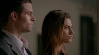 Hayley and Elijah are dancing together in the middle of the ballroom while they talk, Hayley asks where is Tristan, Elijah gets distracted by the sight of Marcel with Aya across the ballroom before he can reply. Hayley, seeing the concerned look on his face, frowns. She asks what is wrong, Marcel turns his head and realizes that not only are Elijah and Hayley there, but Elijah is staring at him. Marcel looks over at Aya with a tense expression, Hayley asks to Elijah, what is Marcel doing there and he says that it's not a party but an initiation. Just then, a row of caterers with trays of champagne flutes walk into the room and tap their glasses with butter knives to get the attention of the party as Tristan, dressed in a fine suit, makes his arrival to the gathering known, the initiation for Marcel had started, Marcel looks down at his hand and realizes that his daylight ring has vanished from his right middle finger. He frowns worriedly, not knowing what to expect. While Hayley suddenly turns to Elijah and say quietly in his ear, Hayley looks shocked and worried at this sudden turn of events. But Elijah hold back her arm in a comforting manner while keeping his eyes on Tristan, as if telling her to wait and see what happens next. After the break, Elijah and Hayley are once again standing at the bar and discussing these newest developments. She says that those vampires are ancient and asks to Elijah how is Marcel supposed to beat one of them. Just then, Tristan appears behind them to join their conversation, he turns to address Hayley personally. Tristan takes her had and kisses it gently, but Hayley not impressed, jerks her hand away after a moment, though it doesn't seem to faze him. Tristan turns to address Elijah next, they start to talk about Marcel, then, Tristan holds out his hand in an invitation to dance, and both Hayley and Elijah look wary about it, which Tristan notices, Tristan says that it's just a dance, Tristan looks at Elijah pointedly, Hayley and Elijah look at each other for a long moment before Hayley sighs and drinks the rest of her champagne before setting her glass on the bar, rolling her eyes while her back is turned to Tristan. Elijah smiles with fake politeness at Tristan, Elijah gives his permission, Hayley reluctantly takes Tristan's offered hand and allows him to lead her onto the dance floor, where they begin to dance together, Elijah looks concerned. Later in the initiation of Marcel, Hayley and Elijah are present, Hayley helps to Marcel to win. Later in the compound, Lucien, Freya, Klaus, Elijah and Hayley are with Alexis, the seer, she want to show to Elijah and Hayley the prophecy, Alexis holds her wrist out to Hayley, who sits down next to her on the couch.Lucien stands to his feet and allows Elijah to take his seat next to Alexis so he can see the vision as well, and she holds out her other wrist to him. Hayley and Elijah look at each other warily before they each bite into Alexis' offered wrists and begin to feed, then lexis' nose has begun to bleed, and Hayley quickly stops feeding on her, looking at the blood on her hands in fright. Suddenly, Elijah throws up all the blood he had just drunk onto the floor, and Hayley looks sick as well as she tries to keep herself from throwing up as well, Hayley says that something is wrong, Elijah looks up at the others with terror in his eyes, Alexis had been poisoned. In the morning, Elijah has just returned home and is standing on the balcony outside his bedroom, which looks across the street to the Kenner apartment. After a moment, Hayley walks out onto her own balcony which faces him. Like Elijah, Hayley is still in her gown from the party, and both look exhausted as they begin to speak to each other. Though they're talking at normal volume, their vampire hearing allows them to hear each other perfectly. She says that she finally got Hope to sleep, she also says that she will have to explain that family to Hope someday and that she will not lie to her, Hayley says that she will start her story with "Always and forever", Elijah smiles at her for those words. They start to talk about Tristan and his relationship with Aurora, his sister, Elijah says that his devotion to her is absolutely pathological and that it's dangerous, Hayley says that loyalty doesn't make people dangerous, Elijah gulps nervously and watches as Hayley turns and walks back into her apartment. In Beautiful Mistake, due to Rebekah being in danger, Elijah and Hayley are racing against the clock to handle the Strix. While Elijah takes care of business elsewhere, Hayley and Marcel are tasked with torturing one of the Strix's oldest vampires, Shen Min. Without any luck, Hayley is forced to call Elijah for help. Elijah gladly comes to their aid and the three are still unsuccessful in torturing and interrogating the ancient warrior. After hours of questioning the Strix's needs for Rebekah's body, Shen Min refuses to be at the mercy of Elijah, Marcel, and Hayley any longer and he commits suicide by taking off his daylight ringing and burning in the sun. In Out of the Easy, Elijah and Hayley spend Thanksgiving together. However, the entire gathering goes south after a violent argument between the de Martel family and the Mikaelson family. This all happens after an agreement between the de Martel's and the Mikaelson's fall flat. This happens when Aurora spitefully mentions that she is holding Rebekah's body at the bottom of the ocean. Hayley assists the Mikaelson family by helping Freya and Klaus capture Tristan de Martel as leverage against Aurora. In The Other Girl in New Orleans, at Hayley's insistence, she helps Elijah and Freya interrogate Tristan to try and find information out about the Strix's secrets and plans for the Mikaelson family. Especially since the sirelines are in danger, Elijah is more than curious to try and pry the information out of Tristan, no matter what the consequences of what happens to Tristan. Elijah even allows Hayley to 