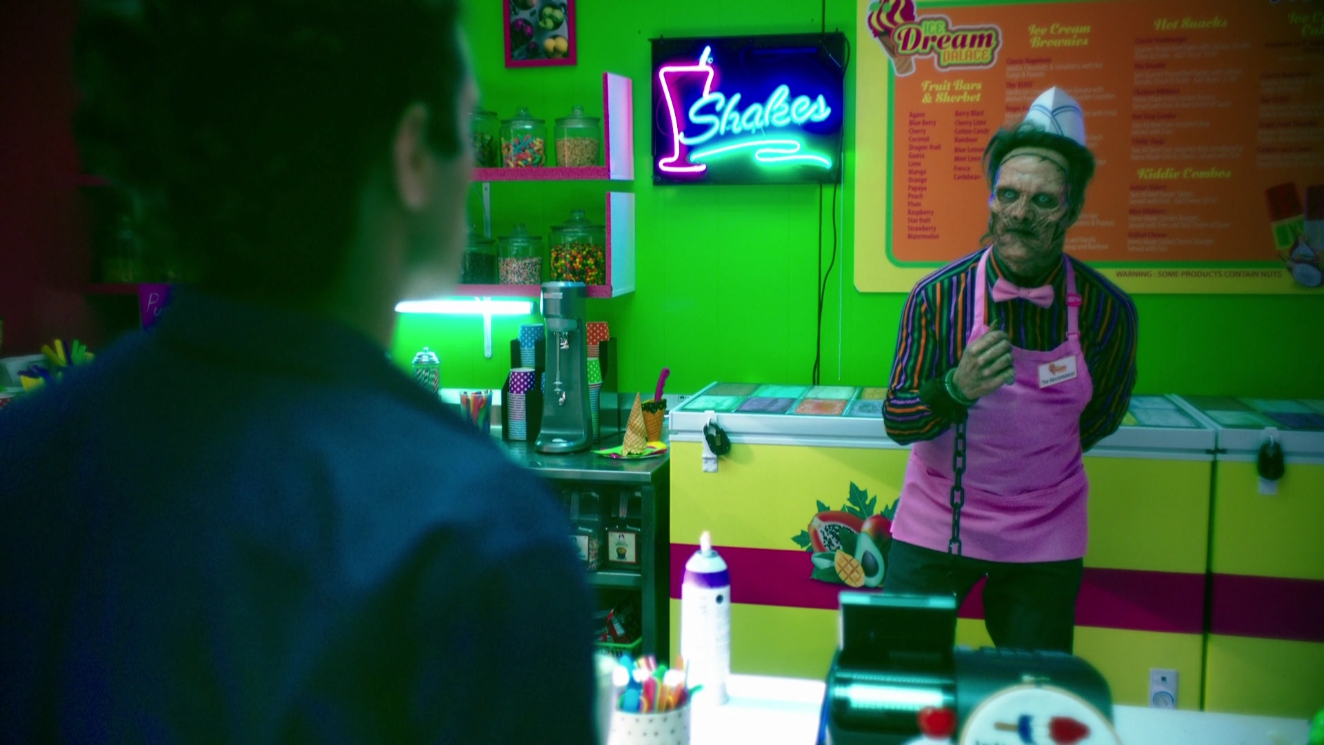 - Enchanted Shackles: Largely unknown, the enchanted shackles were presumably spelled by a witch at an unknown point in time. The spell prevents the person(s) from being able to remove the shackles. The cuffs of the shackles are inscribed with a description in a language that the Necromancer could not read, though a passing sphinx could. In To Whom It May Concern, the sphinx explained that they're spelled to only come off if the cuffed person does the thing they would never do. At some point in time, the enchanted shackles found its way into Malivore where Malivore used them on the Necromancer. Malivore wanted the Necromancer to humiliate himself in front of the "human debris" while trapped within his own personal prison, a replica of the Ice Dream Palace. After Landon helped the Necromancer figure out how to remove the shackles, i.e. sing, he used them on Landon. In order for Landon to remove them, he had to stick up and fight for his own freedom, as opposed to waiting for Hope. It is unknown if the shackles have similar properties to the Cursed Shackles, as the Necromancer did not perform any magic while incarcerated within Malivore.