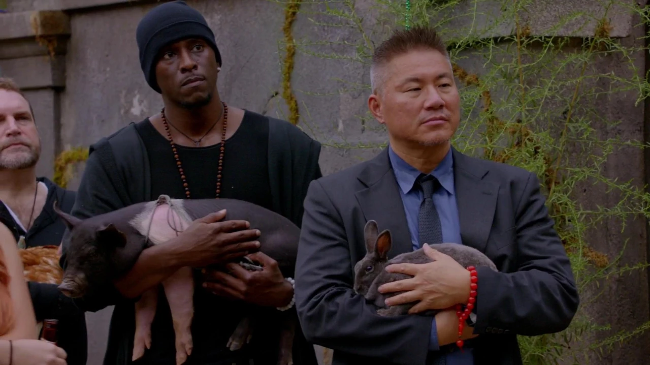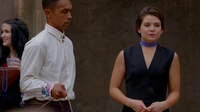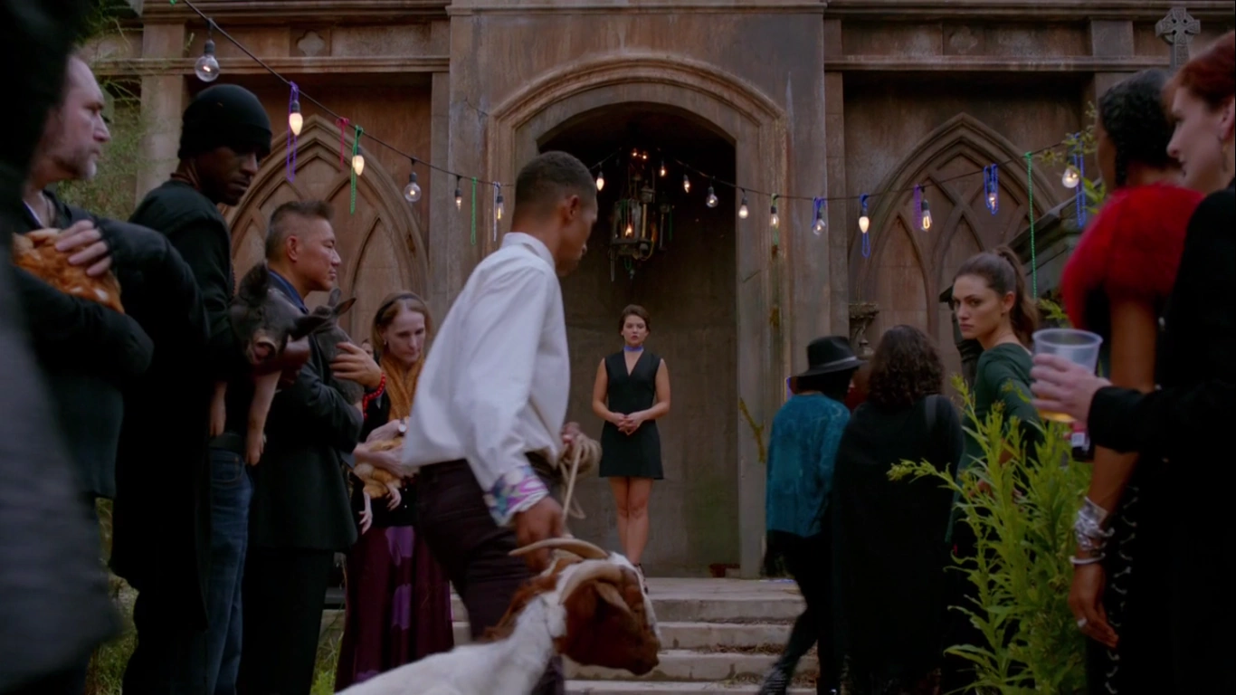 Davina presumably must slaughter the animal. Davina is appalled by what she is expected to do and takes a minute to gather herself, confiding in Hayley that she loves goats and the only reason she is wearing the ribbon is because former Regent, Josephine, wore one just like it. Davina also tells Hayley that she asked the Ancestors to grant her access to the magic needed to lift the crescent curse and as it's Fête de Cadeau, they agreed, stating that using the wolves as slaves is something they would have done previously and she wants to lead the covens away from the old ways.