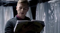 Wes doesn't keep his word and instead of going to his classroom with Elena, he releases Enzo and sends him there to solve his unsolved business with Damon. Before he sends him, he injects him with poison telling him to not come back for the antidote unless he kills Damon. Damon, Aaron and Stefan arrive at Wes' classroom but they find only Enzo. Stefan calls Wes but Wes is not willing to come and threatens Stefan that he will kill Elena if they hurt Aaron only to get the answer from Stefan that the threat goes both ways. Damon volunteers to kill Aaron when Stefan informs him about the phone call and Aaron, to save his life, tells them that he has in his dorm room Augustine files. Enzo who wants them to listen his side of the story, he becomes quite nervous when they don't listen to him and he demands Damon to stay when Aaron and Stefan leave for the dorm.