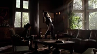 Damon escapes from his cell and goes straight back to the Salvatore house looking for Elena. Instead, he runs into Katherine who had just run away from Stefan's bedroom because she found more grey hair and she panicked. Damon asks her if she saw Elena and Katherine is sure to inform him about what happened between her and Stefan the previous night.