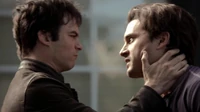Enzo is still mad at Damon for leaving him behind and after a while they start fighting. He throws Damon through a window but Damon tells him he won't fight him back. Enzo informs him about the poison and that he has to kill him but the poison acts quickly on him and he collapses. Damon takes him back to the lab and injects him with everything that writes "antidote" on it. One of them works and Enzo wakes up. Damon explains him how he was able to leave him behind and the prize he paid for it but Enzo doesn't care and he tells him that he will always be a monster.