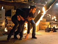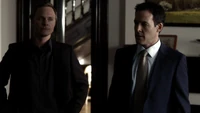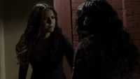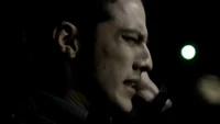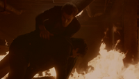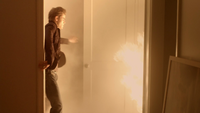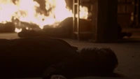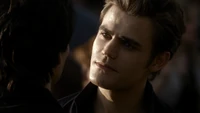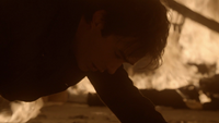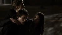 Stefan hears the building on fire, where Elena asks John where Damon is. John tells her that he is with the rest of the tomb vampires. Stefan asks Elena about another entrance, and he goes to rescue Damon. John stops Elena from following him and grabs her arm. John says, "If you take one more step, then I'll alert those deputies that they missed a vampire." Elena says, "I'm asking you not to", to which he replies, "That doesn't mean anything to me." In a matter-of-fact manner Elena states, "As my father it should." Taken aback, he acknowledges the truth of her statement and he lets her go. Bonnie tries to stop Stefan from going in the building, but he wants to save his brother. Elena comes, but Bonnie stops her and grabs her, chanting a spell that calms the fire in the basement just long enough for Stefan to save Damon, but to kill the rest of the vampires that are still alive. Elena tells Stefan that the cover story of the fire is that old wiring started it. Stefan says that he tries so hard to hate Damon but he can't. When Stefan worries about Damon interfering in their relationship, Elena comforts him and assures him that she loves him and that he has nothing to worry about.