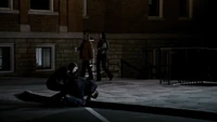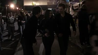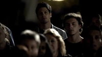 As Mayor Lockwood and his wife leave, Bonnie runs into the tomb vampires leader automatically sensing that he's a vampire and follows him. John activates the device and suddenly all the vampires start to grab their head in pain. John injects vervain into Damon as the deputies inject vervain into the rest of the vampires. Tyler, mysteriously also hears the device which causes him to crash his father's car. Alaric stops a cop from reaching Stefan saying he's got this one and he explains to Elena and Stefan that the cops are injecting everyone who've gone down with vervain.
