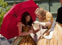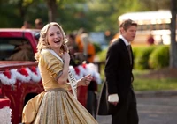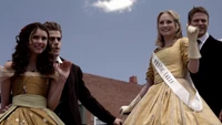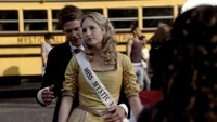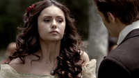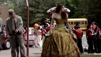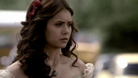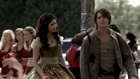Elena and Stefan are getting ready for the Founder's Day parade. Mrs. Lockwood is supervising the preparations, telling the marching band that the lineup is wrong and Matt to get on his float. Damon and Stefan are talking about Elena when she arrives, dressed as a southern belle and strongly resembling Katherine as she curtsies. They both had to take a second look at Elena because she resembles Katherine so strongly dressed up as she is now.