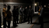 John is showing Mayor Lockwood how the device, which is harmful to vampires, works in the Gilbert Building, explaining where to put the key in the device and the length of time it works saying that he got a tip about a vampire attack tonight. After the device is activated, the Sheriff's deputies will inject them with vervain and bring them to the building to be finished off. A group of the rest of the tomb vampires are shown to be planning an attack on the founding families. They had been planning it for a while and the group leader says to wait for the fireworks to start, but before then for everyone to blend in with the crowd. Anna shows up, acting like she's going along with the plan.