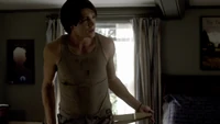 As Damon is leaving Elena's house they talk to each other on how he came in the town to destroy it and that night he wanted to protect it. He says that he isn't good, it isn't in him. Damon kisses Elena and she kisses him back. Jenna catches them and says, "Its late. You should probably come inside." After Jeremy takes all the pills, he lies down, and his eyes close. John is in the kitchen, and he explains to Elena about Isobel telling her that the reason why he hates the vampires so much is because of her becoming one. Elena grabs a knife and cuts off his fingers including the one where his special ring was and stabs John, where it is revealed that Elena is actually Katherine pretending to be Elena. The real Elena walks in and goes towards the kitchen, where Katherine is, and the episode ends.