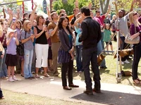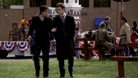 THIS IS JUST THE BEGINNING, WITH AN ENDING THAT WILL LEAVE YOU HANGING — Founder's Day has finally arrived, and everyone is busy with last-minute preparations for floats and fireworks for the 150th Founder's Day Celebration. Stefan is uncomfortable with Damon's new attitude toward Elena, but Elena is more concerned about repairing her relationship with Jeremy. Jeremy is worried about Anna, but not sure he's on board with her latest plan for the future. While Caroline is enjoying her day as Queen of the celebration, she also tries to help Matt and Tyler get their friendship back on track. Finally, although Damon and Alaric did their best to stop him, John Gilbert sets a plan in motion that brings Founder's Day to an end amid chaos, destruction and death.